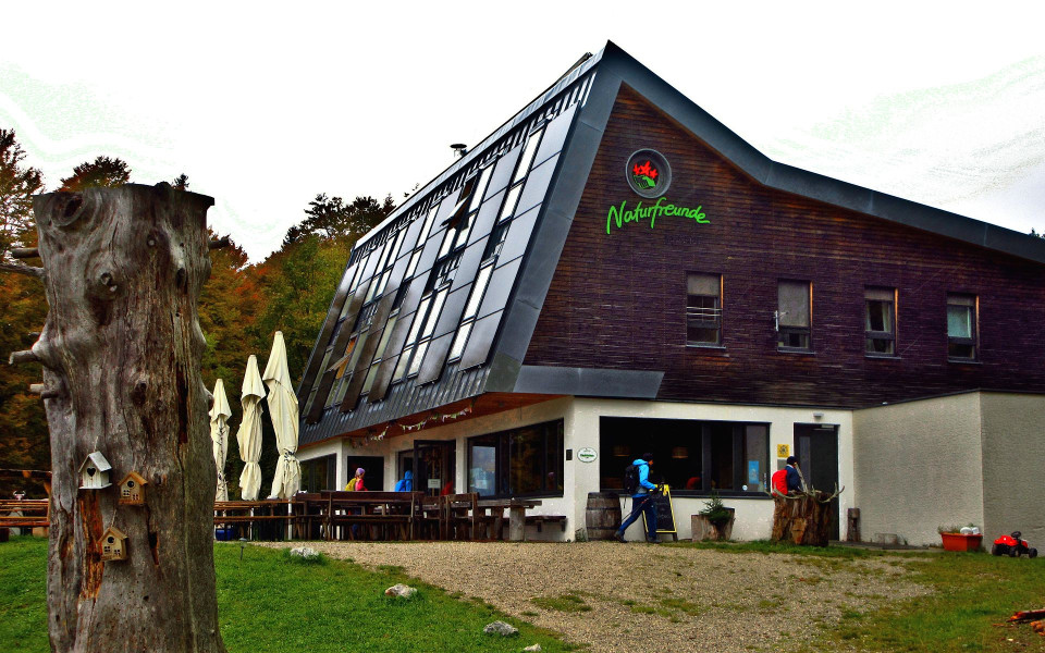 Die neun Teilnehmer der Wandergruppe – 5 Frauen und 4 Männer (inklusive Wanderführer) – treffen sich um halb neun Uhr am Bahnhof Payerbach-Reichenau. Wir fahren mit dem Bus ins Höllental, wo wir um neun Uhr in Kaiserbrunn aussteigen. Das Wetter lässt sehr zu wünschen übrig: es regnet, die Berge sind wolkenverhangen. Da die steilen Kehren des Miesleitensteiges, der oberhalb eines malerischen Seitentales in Richtung Knofeleben führt, größtenteils im Wald liegen, spüren wir den leichten Regen nicht so sehr. Ab und zu setzt er aus, einmal kommt sogar kurz die Sonne heraus. Nachdem wir das mit Drahtseilen gesicherte steile Schotterfeld und ein letztes Waldstück passiert haben, gelangen wir auf eine Forststraße, von der nach einigen Kehren der markierte Waldweg zur Knofeleben abzweigt. Da es kurz vor dem Naturfreundehaus wieder zu regnen beginnt, beschließen wir bereit jetzt – es ist gegen halb zwölf – einzukehren und besseres Wetter abzuwarten. Als wir, gestärkt von den kulinarischen Köstlichkeiten, um dreizehn Uhr aufbrechen, hat sich das Wetter nicht wesentlich geändert; da keine/r so rechte Lust hat, noch den Gipfel des Krummbachsteins zu besteigen, treten wir den Abstieg nach Payerbach an, wenngleich in einem weiten Bogen über den Lakabodengraben. Während des Abstiegs beginnt es wieder zu regnen, in der wild-romantischen Eng jedoch bricht die Sonne durch und bleibt uns mehr oder weniger im letzten Abschnitt der Wanderung erhalten. Gegen halb vier erreichen wir den Bahnhof Payerbach-Reichenau.